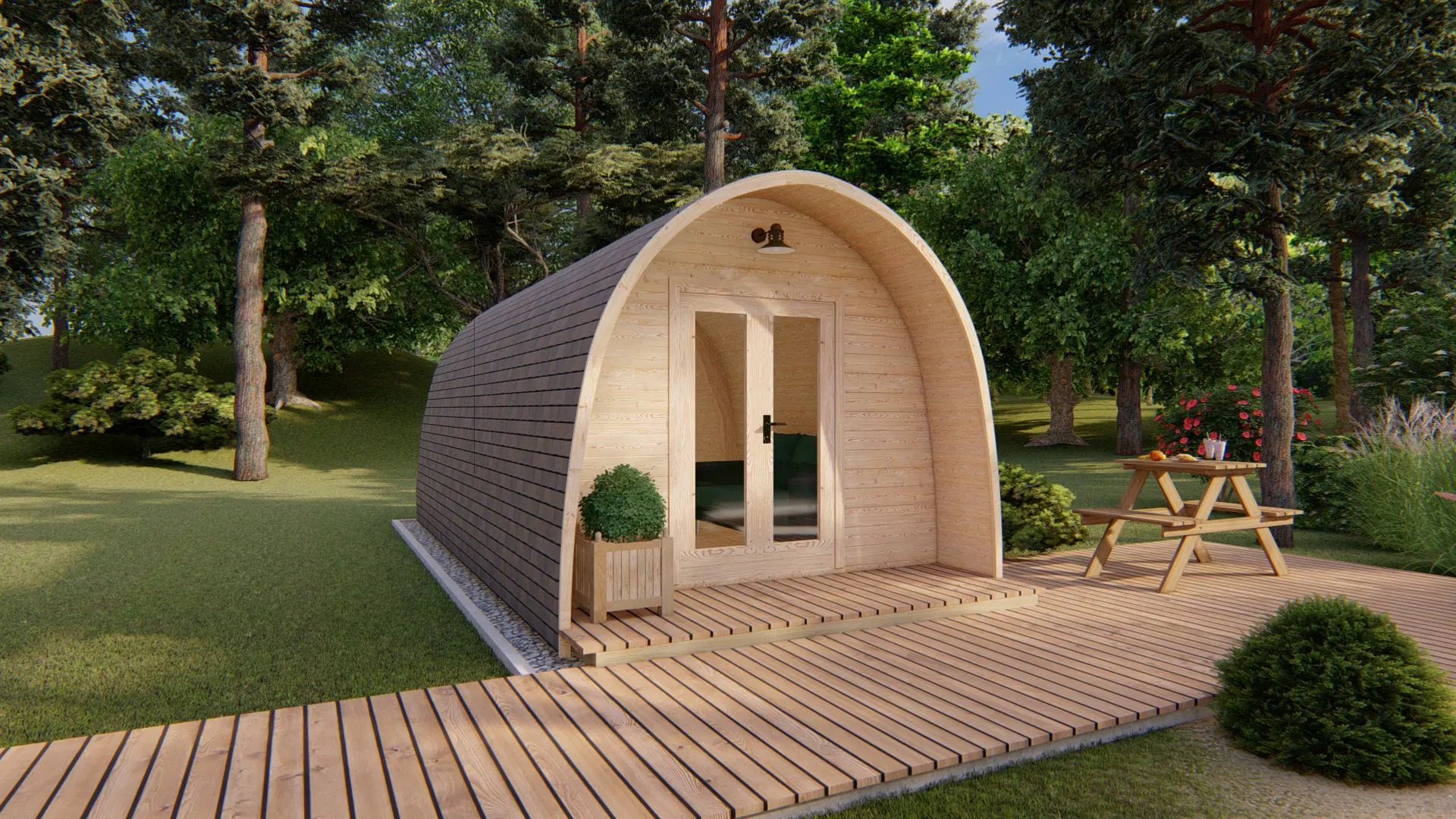 Questo POD ha un’altezza al colmo pari a 260 cm e comprende 2 vani: un monolocale frontale di 5,8 mq ed un vano più piccolo posteriore di 3,5 mq dotato di porta e finestra a doppio battente.