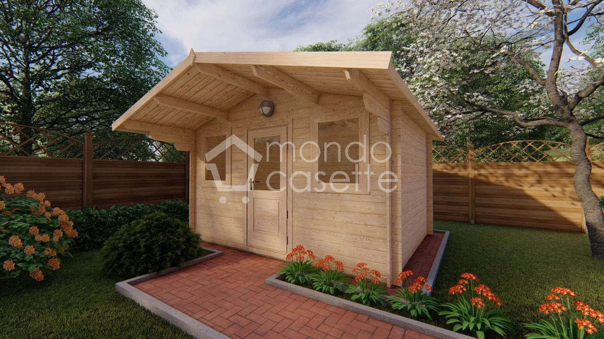Casetta in legno Genova 3,8×3m in abete nordico naturale, con listelli dello spessore di 28 mm è ideale da utilizzare come ripostiglio nel proprio giardino.