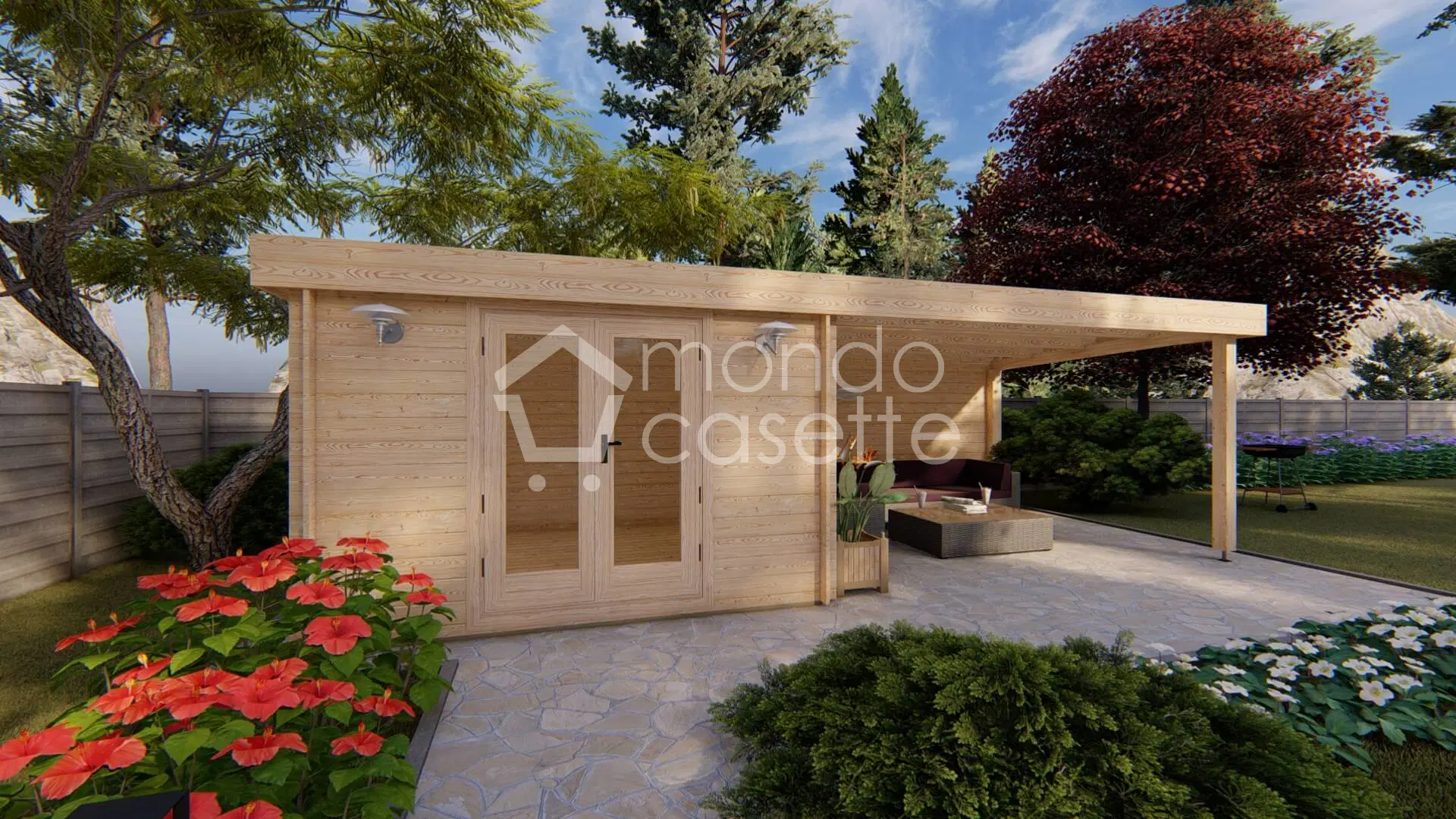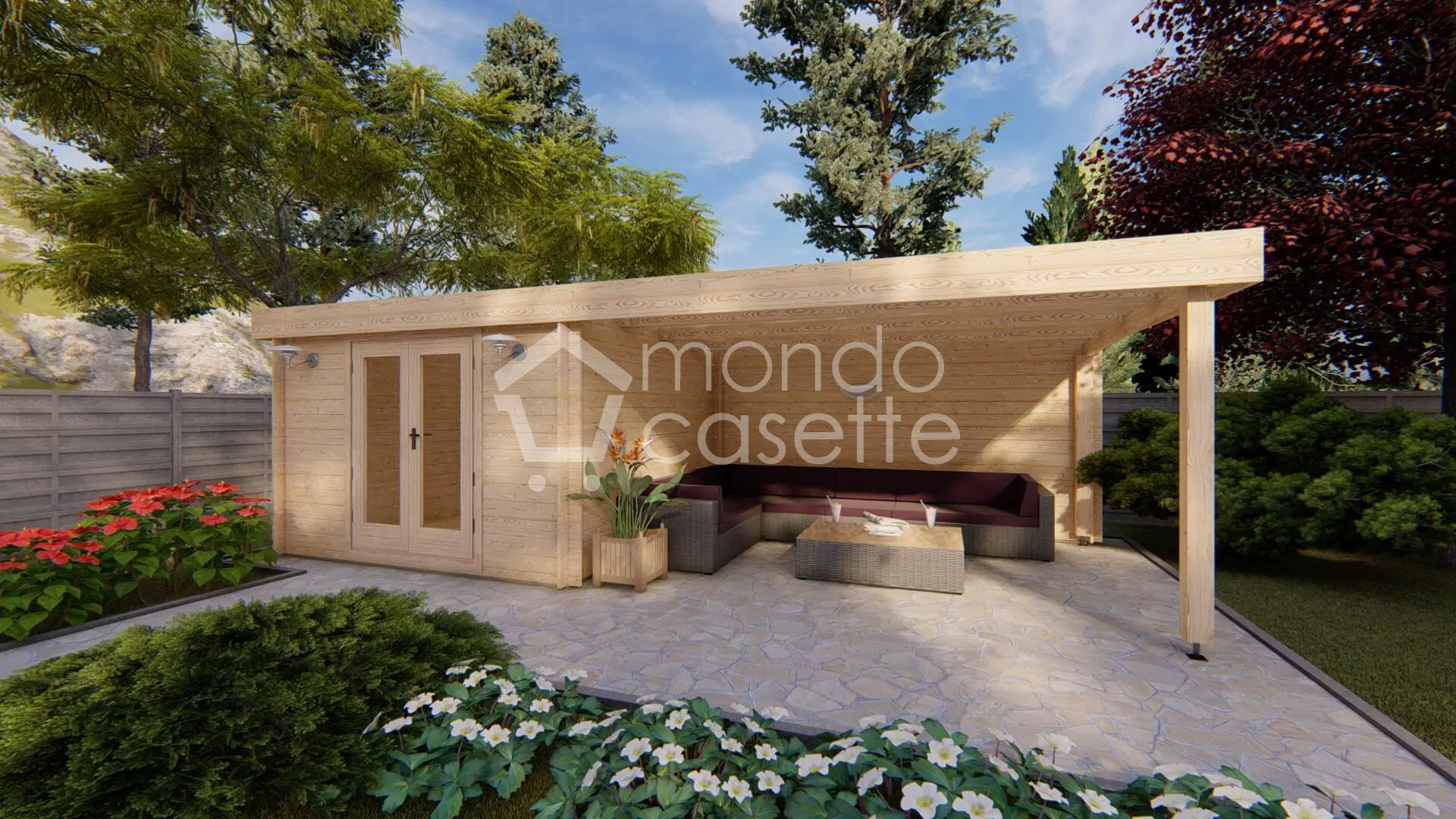 Splendida casetta in legno Ischia 7,46×3,30m realizzata in abete nordico naturale con spessore delle pareti da 28 mm, può essere utilizzata come ricovero attrezzi. Dotata anche di uno spazioso porticato dove potersi godere le giornate estive con amici e famiglia, puoi aggiungerci uno dei nostri tavoli in rattan.